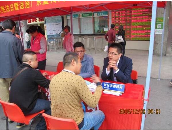 □□在“12.4”国家宪法日来临之际,广东法迈律师事务所作为观湖办事处松元厦社区的法律顾问,积极参加了观澜司法所、观湖办事处松元厦社区在观澜汽车站举办的《2015年“12.4”国家宪法日暨法治广东宣传周普法活动》,义务为社区群众普及法律知识,宣讲宪法精神,为构建和谐社会践行着神圣而光荣的法律使命。